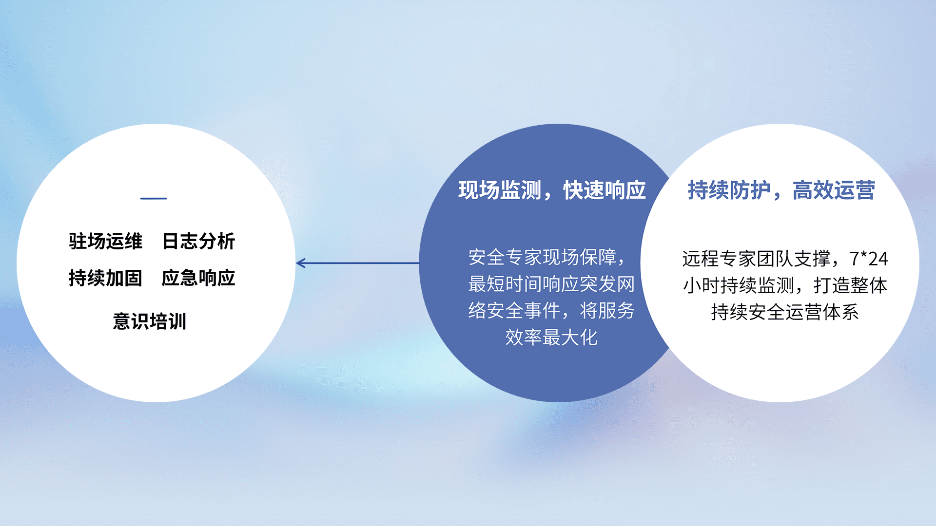 针对客户行业特性,,,,提供专属的一站式安全管理服务,,,,帮助客户全面感知网络空间威胁,,通过安全专家的线上、、线下防护支持,,,实现风险闭环,,将安全保障常态化,,,为客户打造常态化安全运维运营服务。。